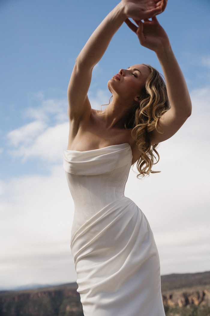 Claudy provided the bridal makeup for the 2025 couture wedding dress campaign by acclaimed Australian designer Moira Hughes, captured at the breathtaking Caoura Cliffs in the Southern Highlands.